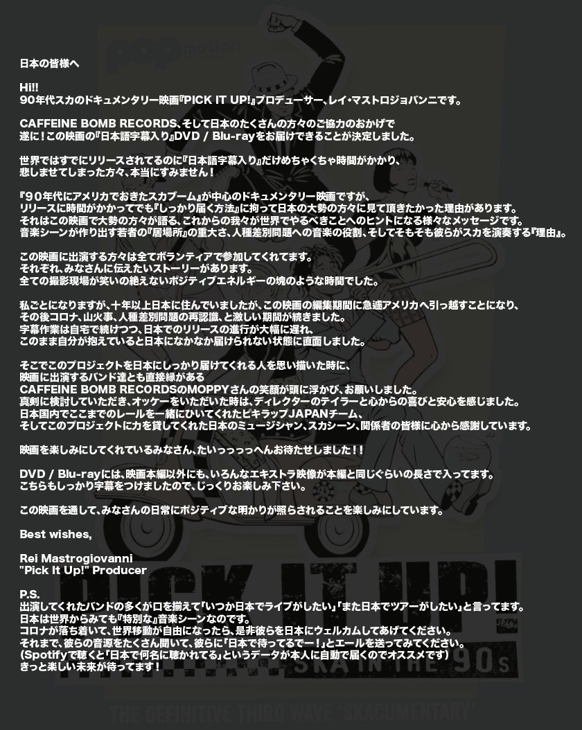 ドキュメンタリー映画『PICK IT UP!』プロデューサー、レイ・マストロジョバンニよりコメント