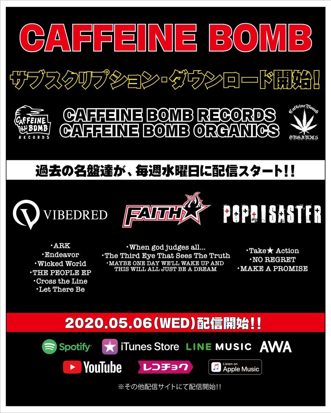CAFFEINE BOMB RECORDS&ORGANICS 第一弾 旧譜サブスク配信開始!